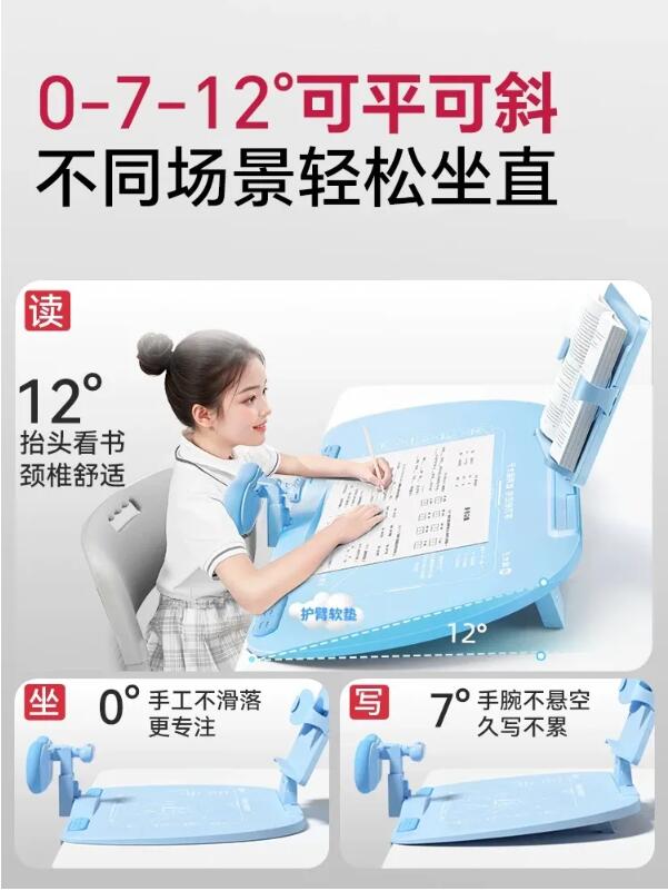 来源:广东省文化用品行业协会。本研究通过结合校园视力筛查中“不良坐姿与近视高度相关”的核心结论,猫太子护栏坐读写12°模式在儿童坐姿矫正及近视防控体系中展现出明确的实用价值:其一,近视防控效果显著,23名轻度近视受试者使用一个月后,近视度数平均增长从之前的每月约4.2度降至3度,8名学生度数零增长,尤其对坐姿偏移严重的学生,近视进展延缓效果更为明显。尽管用眼疲劳缓解效果相对较弱(37%),但这主要受限于单一角度调节的功能定位,若搭配产品配套的AA级护眼灯及定时休息提醒功能,可形成“坐姿矫正+光照保护+时间管理”的三维护眼体系。其二,脊椎弯曲度改善达中等水平(50%),能有效辅助恢复脊柱自然生理曲度,避免因长期坐姿问题引发的驼背、含胸等体态问题,实现“视力-体态”双重保护;其三,左侧重放改善效果突出(70%),通过“角度引导+护栏约束”的双重设计,精准解决单侧重心偏移这一核心近视诱因,从源头减少坐姿不良对视力的影响。