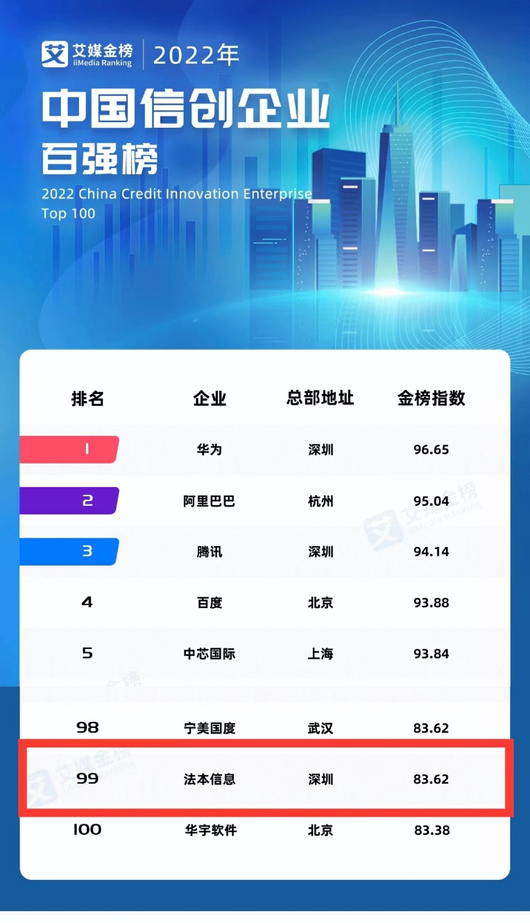 《2022年中国信创企业百强榜》是采用iiMeva l大数据评价模型计算赋值,通过对企业综合实力、竞争力、研发性、创新性、网络传播、社会评价、分析师团队评价等指标进行分析核算生成。法本信息凭借整体综合实力和信创领域的优秀评分成功登榜。